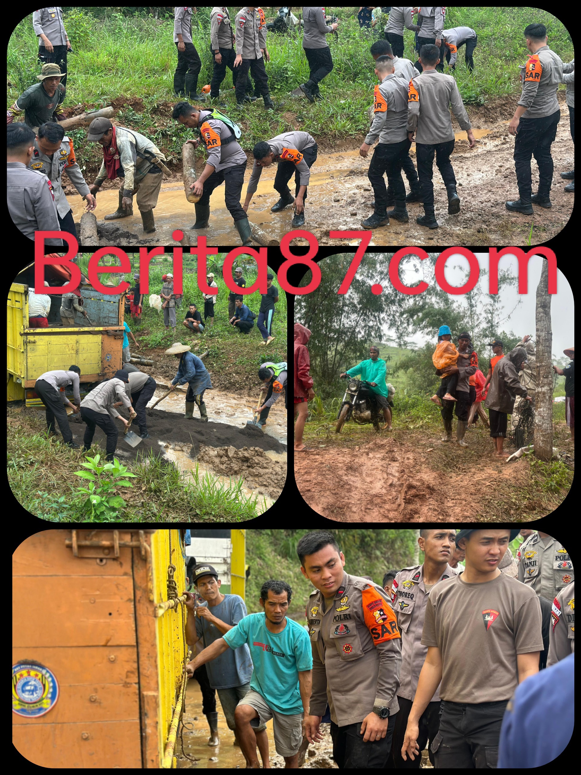 PEDULI SESAMA TIM SAR BRIMOB EVAKUASI KORBAN BANJIR BANDANG DI SUKABUMI