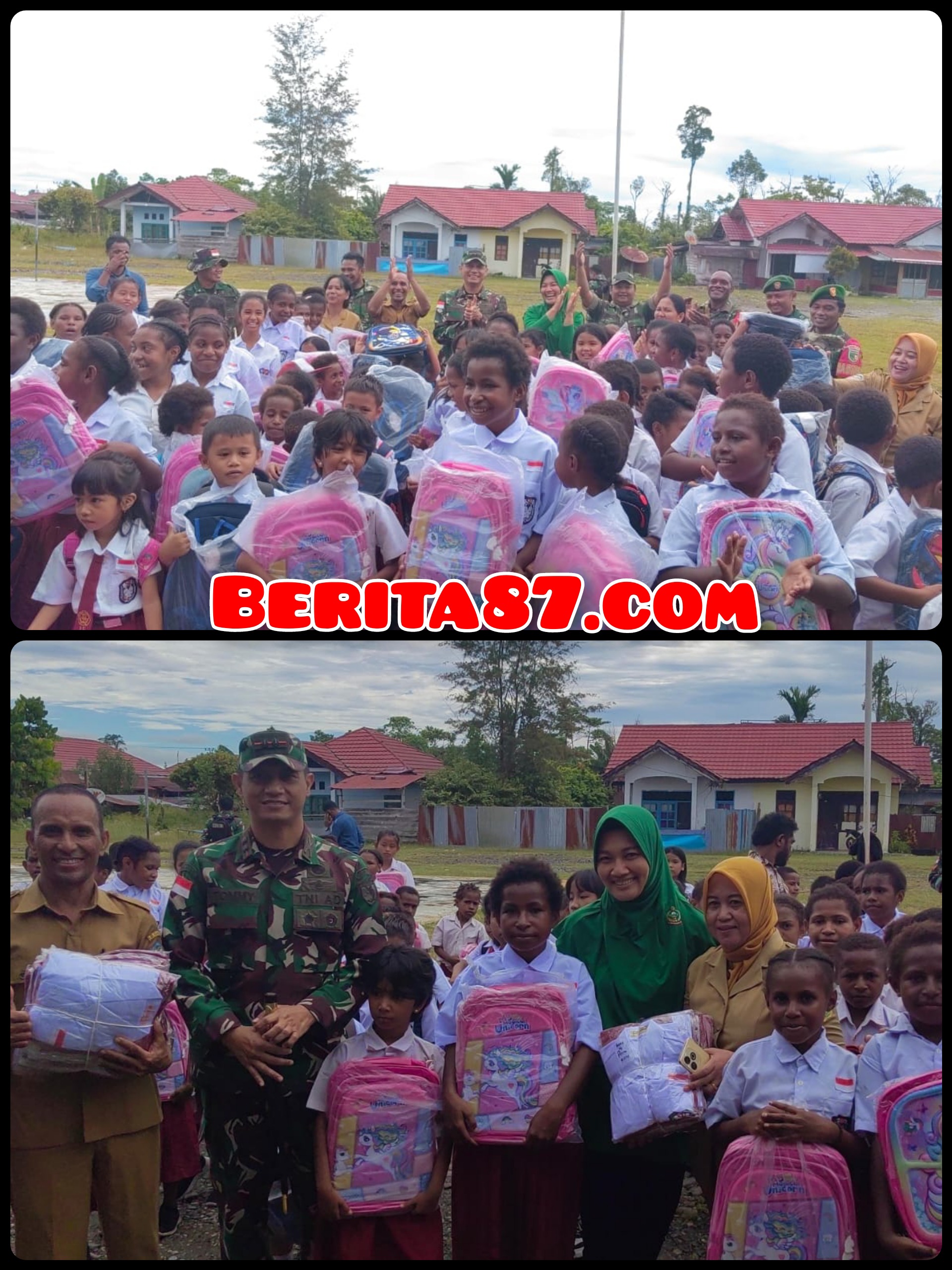 Dandim 1715/Yahukimo Serahkan Bantuan KASAD Tas dan Seragam Sekolah kepada Anak Sekolah di Dekai Yahukimo