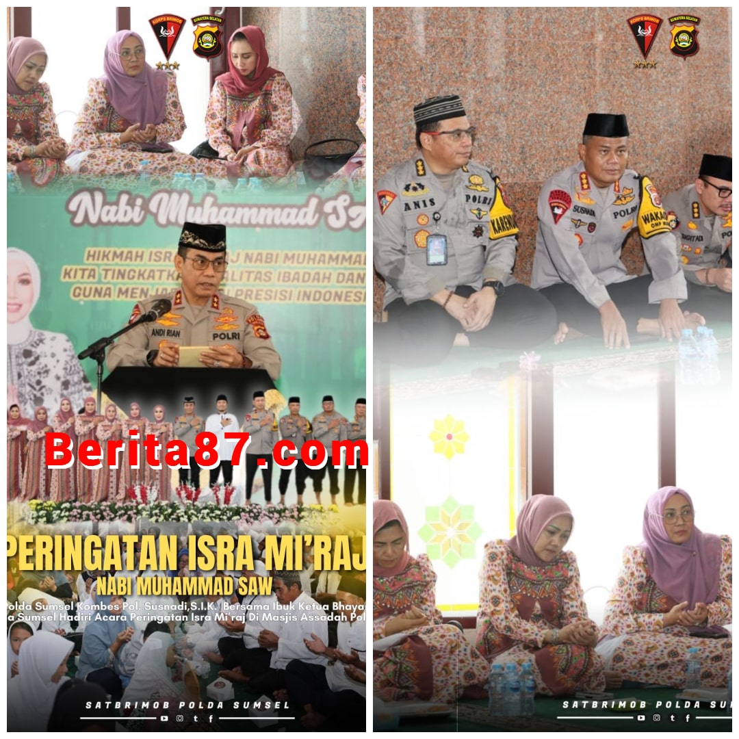 Palembang, Komandan Satuan Brimob (Dansat Brimob) Polda Sumatera Selatan, Kombes Pol. Susnadi, S.I.K., menghadiri kegiatan peringatan Isra Mi’raj 1446 H yang digelar di Masjid Assadah Polda Sumsel. Acara ini turut dihadiri oleh Ketua Bhayangkari Cabang Satbrimobda Sumsel beserta jajaran, serta personel kepolisian dan masyarakat sekitar.