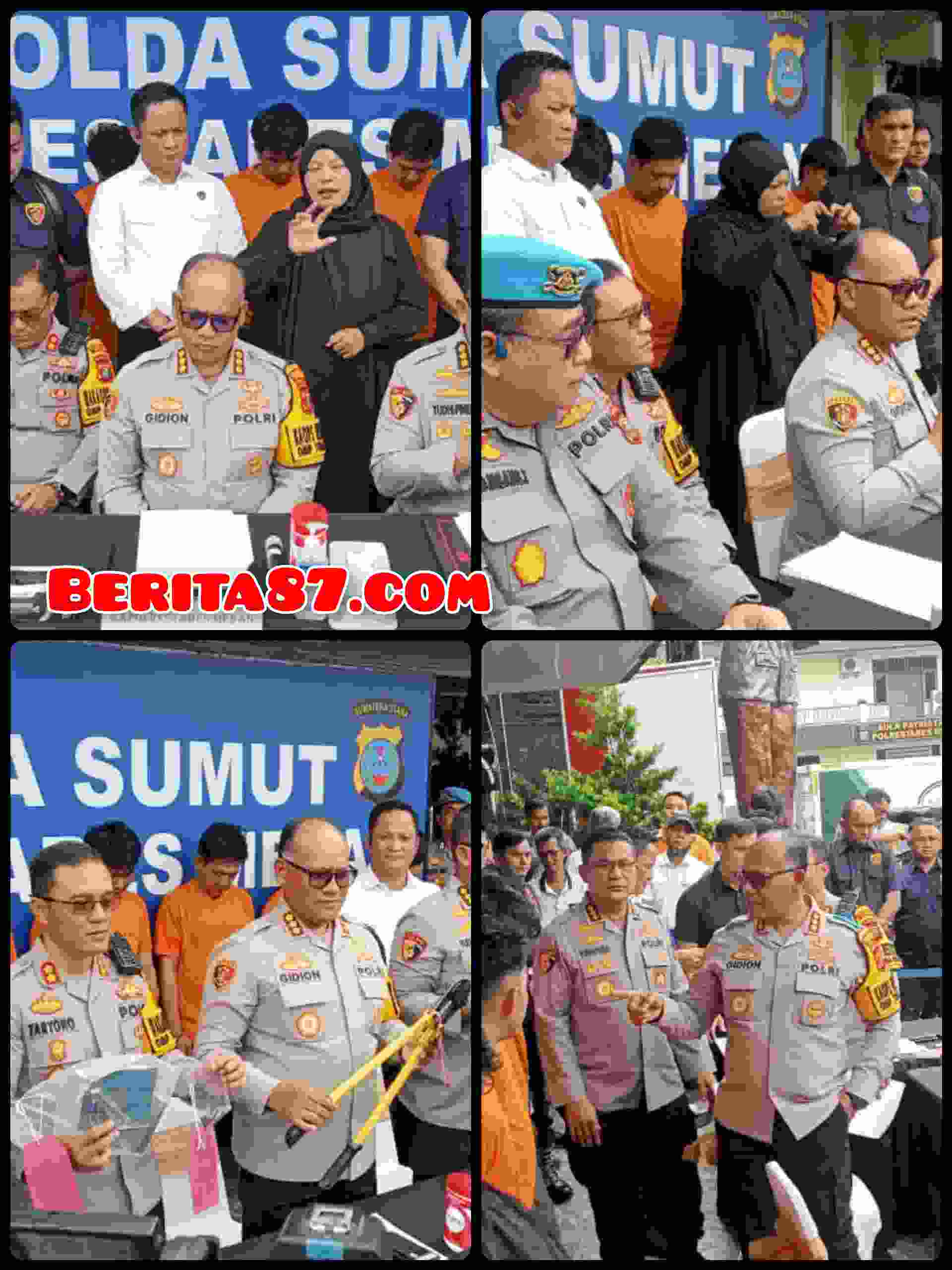 “Dari ketujuh pelaku, tiga diberi tindakan tegas dan terukur karena mencoba melarikan diri dan melawan petugas. Mereka dalam beraksi memiliki peran masing-masing,” terang Kapoldasu Irjen Pol. Whisnu Hermawan Februanto, S.IK., M.H melalui Kabid Humas Kombes Pol. Yudhi Pinem saat konferensi pers di Mapolrestabes Medan, Senin (10/2) siang.