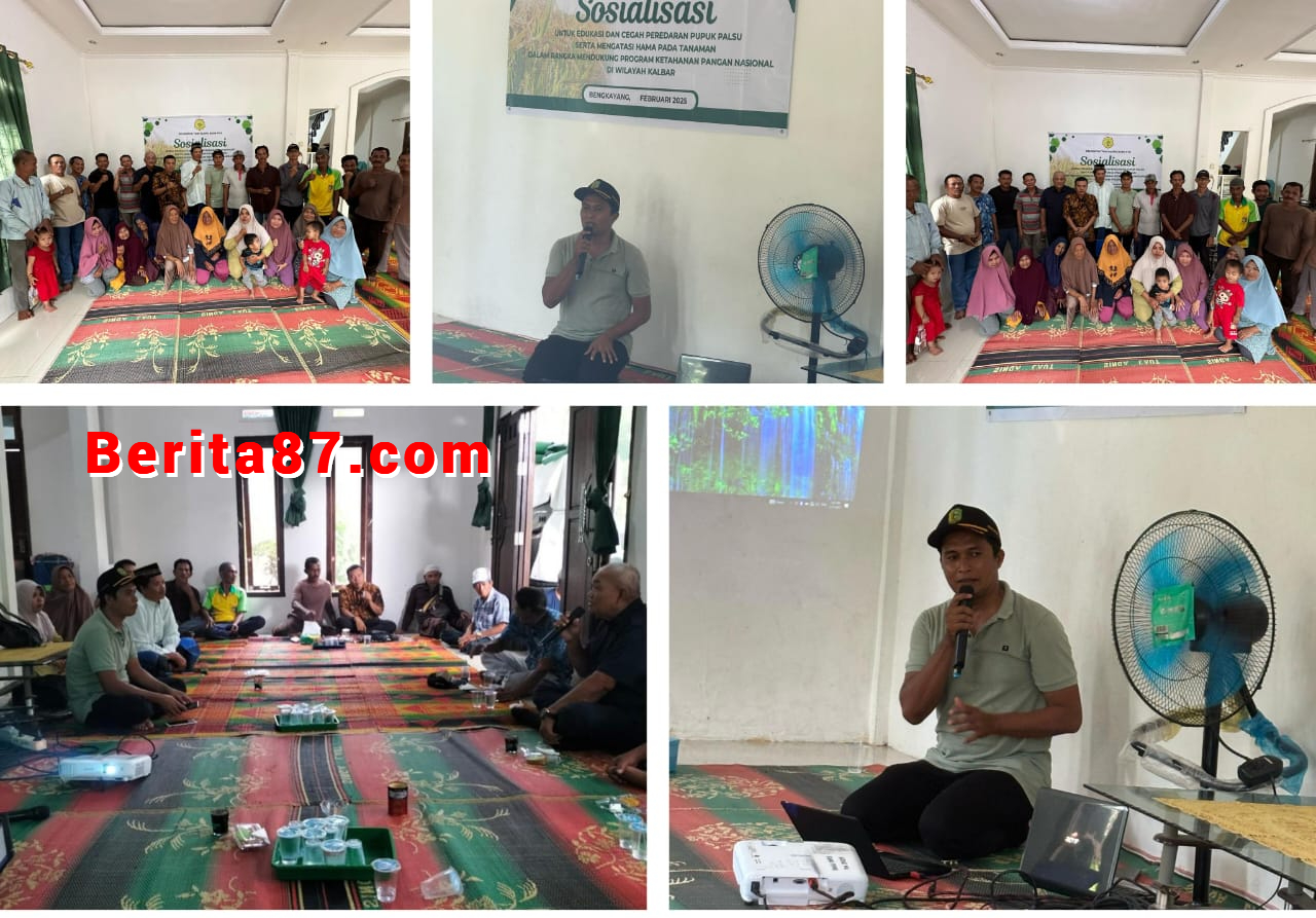 Bengkayang, Kalbar, – Dinas Pertanian dan Pangan melalui Balai Penyuluh Pertanian (BPP) Kecamatan Sui Raya Kepulauan menggelar sosialisasi di Desa Rukma Jaya, Kabupaten Bengkayang. Kamis (27/02) dengan tema : Sosialisasi, Edukasi dan Pencegahan Pupuk Palsu serta Pengendalian Hama dan Tanaman.