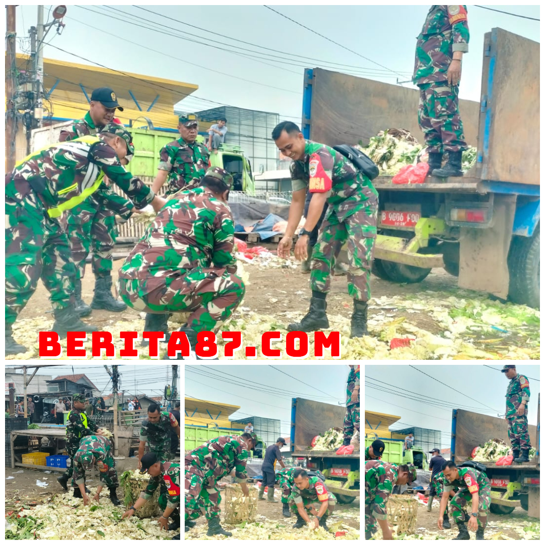 Personil Koramil 04/Babelan Bersihkan Sampah di Pasar Babelan, Wujudkan Lingkungan Bersih dan Nyaman