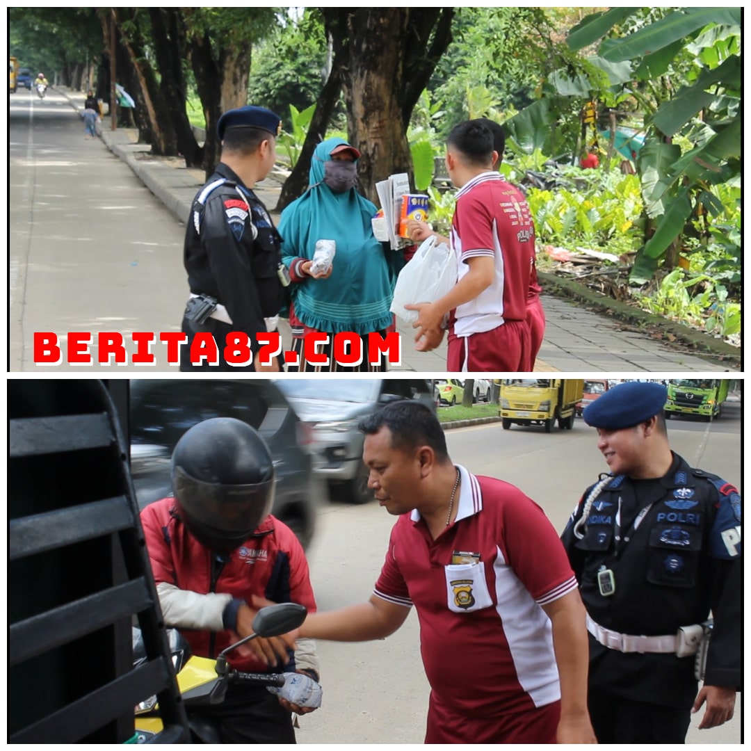 Personel Batalyon A Pelopor Satuan Brimob Polda Sumsel mengadakan aksi berbagi dalam program Jum’at Berkah dengan membagikan paket Makanan Untuk Berbuka Puasa kepada Masyarakat.di seputar wilayah Mako Batalyon A Pelopor, Jum’at (14/03/2025).