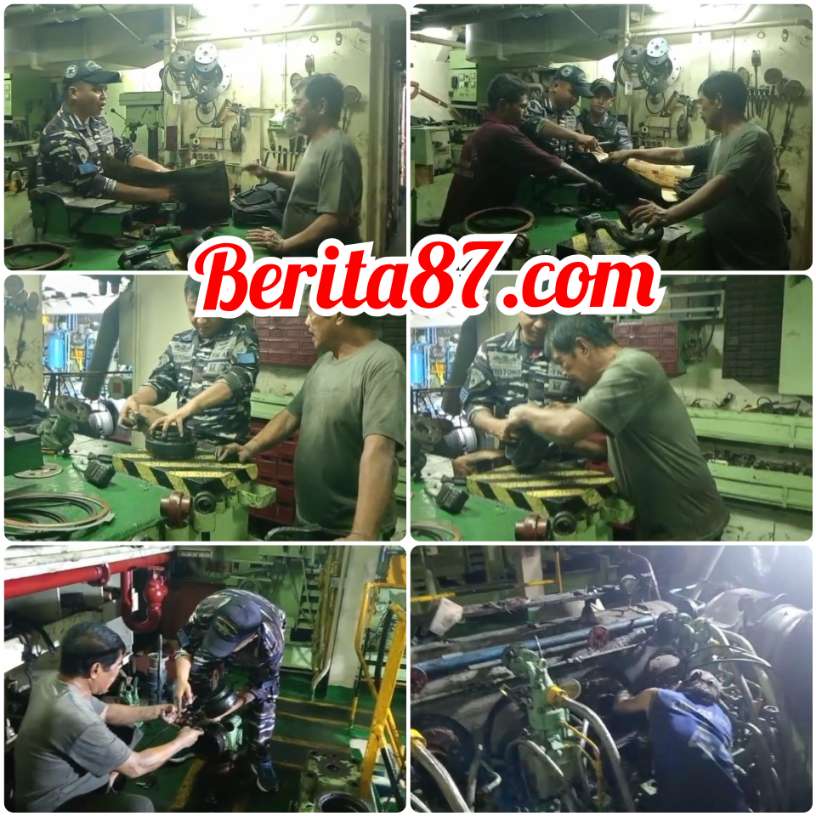 Dengan sigap, tim dari KRI Matabongsang-873 bersama awak kapal MV Serenity-09 melakukan perbaikan dengan mengganti seal/oring serta memasang kembali klep pendingin air tawar.
