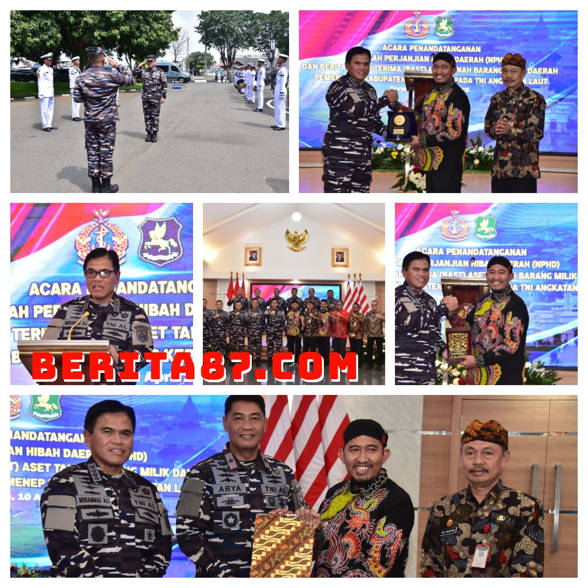 Jakarta, 10 April 2025,— Sebagai wujud pembangunan kekuatan TNI AL di wilayah Alur Laut Kepulauan Indonesia II (ALKI II) khususnya Pulau Madura, Kepala Staf Angkatan Laut (Kasal) Laksamana TNI Dr. Muhammad Ali menerima dan menyaksikan penandatanganan Naskah Perjanjian Hibah Daerah (NPHD) dan Berita Acara Serah Terima (BAST) aset tanah barang milik Pemerintah Kabupaten Sumenep yang ditandatangani Bupati Sumenep Dr. H. Achmad Fauzi Wongsojudo, Sekda Kabupaten Sumenep Ir Edy Rasyadi dan Danlantamal V Surabaya Laksma TNI Arya Delano oleh di Mako Koarmada II Surabaya. Kamis (10/4).