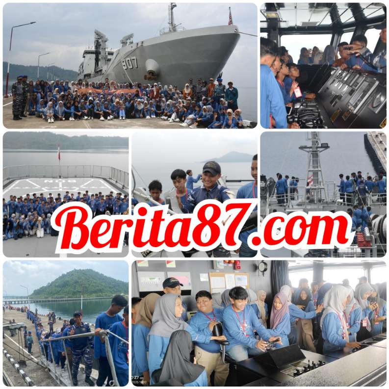Guna menambah wawasan tentang kebangsaan mengenai kegiatan P5 (Projek Penguatan Profil Pelajar Pancasila) dan semangat kebaharian dengan memperkenalkan tugas prajurit TNI AL khususnya di kapal perang, ratusan siswa – siswi SMPN 30 Bandar Lampung mengunjungi Kapal Perang Republik Indonesia (KRI) Bontang-907 yang sedang sandar di Dermaga Mako Lanal Lampung, Caligi. Sabtu (13/4).