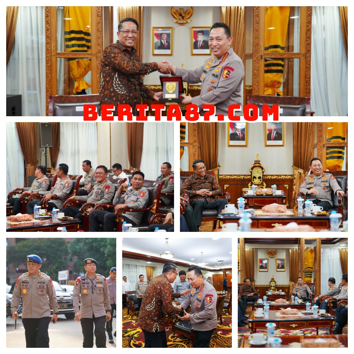 Menteri Hukum Republik Indonesia Beserta Rombongan Disambut Dengan Hangat Dan Penuh Sukacita Oleh Kapolri Di Ruang Perjamuan Gedung Utama Mabes Polri, Kebayoran Baru, Jakarta Selatan.