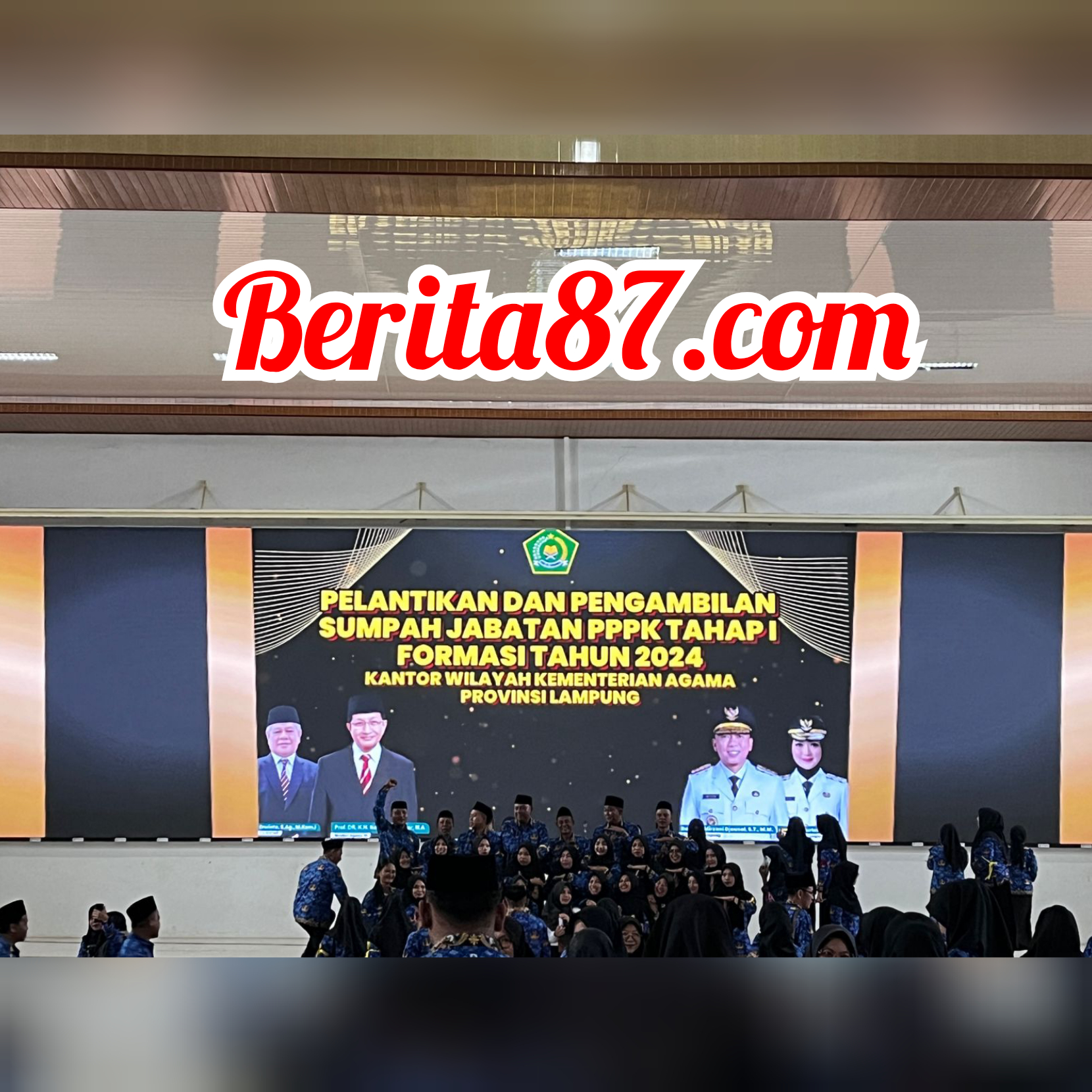 Bandar Lampung, 26 Mei 2025 — Kantor Wilayah Kementerian Agama Provinsi Lampung secara resmi melaksanakan Pelantikan dan Pengambilan Sumpah Jabatan Pegawai Pemerintah dengan Perjanjian Kerja (PPPK) Tahap I Formasi Tahun 2024, bertempat di UIN Raden Intan Lampung, Senin (26/5/2025).