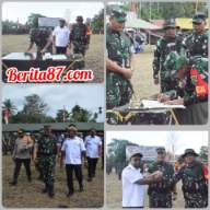Setelah pelaksanaan upacara, Danrem 172/PWY Brigjen TNI Tagor Rio Pasaribu, S.E., bersama rombongan melanjutkan kegiatan dengan meninjau secara langsung hasil pengerjaan sasaran fisik TMMD. Selain itu, Danrem juga meninjau pelaksanaan kegiatan bakti sosial yang meliputi pengobatan massal dan pembagian paket sembako kepada masyarakat.