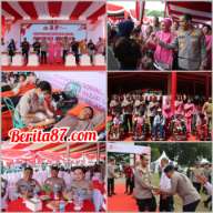 WADANSAT BRIMOB POLDA SUMSEL AKBP KHAIRU NASRUDIN, S.I.K., M.H. HADIRI KEGIATAN BAKTI SOSIAL, BAKTI KESEHATAN, DAN BAZAR UMKM DI LAPANGAN PAKRI