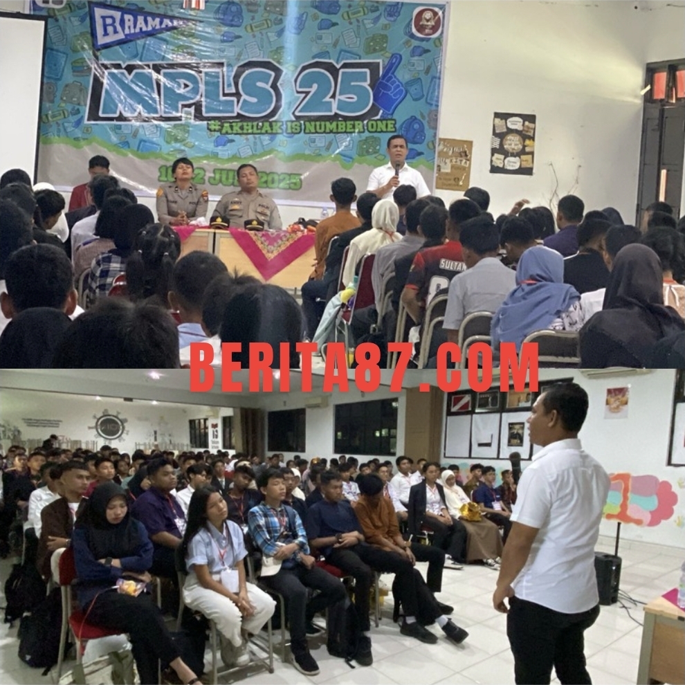 Polsek Medan Tuntungan, Polrestabes Medan melaksanakan kegiatan Police Go To School di SMK Telkom, Kelurahan Simpang Selayang, Kecamatan Medan Tuntungan, Jumat (11/7/2025).