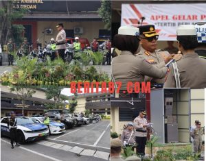 Kapolrestabes Medan, Kombes Pol. Dr. Gidion Arif Setyawan memimpin apel gelar pasukan operasi kepolisian kewilayahan “Patuh Toba 2025” di halaman Apel Markas Polrestabes Medan, Senin (14/7/2025).