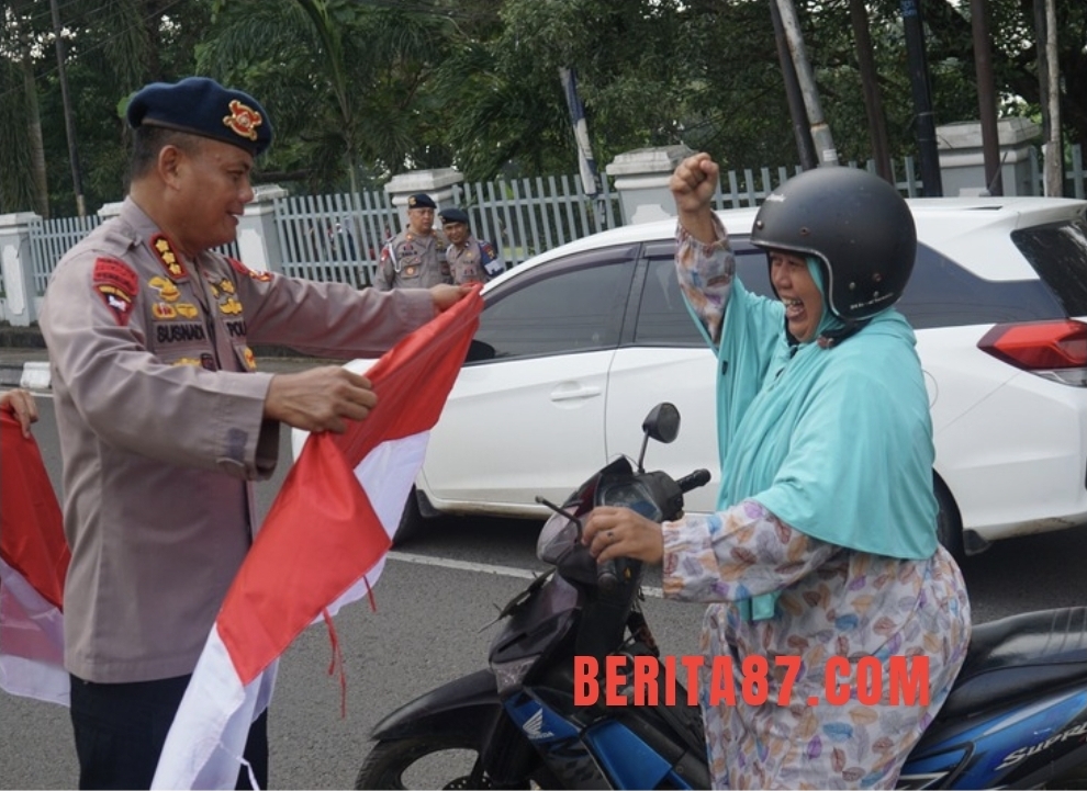 Kombes Pol. H. Susnadi, S.I.K. menyampaikan bahwa kegiatan ini adalah bagian dari program nasional “Gerakan Pembagian 10 Juta Bendera Merah Putih” dalam rangka menumbuhkan semangat patriotisme menjelang peringatan Hari Kemerdekaan Republik Indonesia.