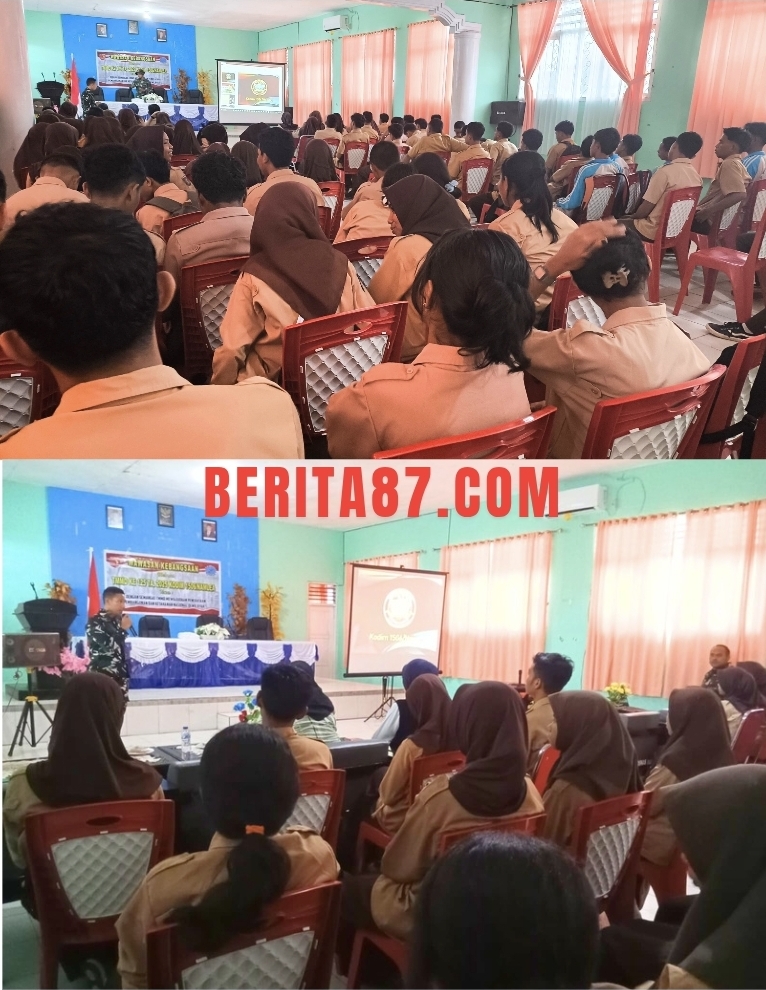 Buru Selatan, 09 Agustus 2025 – Dalam rangka meningkatkan kesadaran dan pengetahuan siswa tentang pentingnya wawasan kebangsaan, Satgas TMMD 125 Kodim 1506/Namlea melaksanakan kegiatan non fisik berupa pemberian materi wawasan kebangsaan kepada siswa SMA N 7 Buru Selatan. Kegiatan ini diikiti oleh ± 150 siswa siswi yang didampingi oleh guru kesiswaan SMA N 7 Buru Selatan. Kegiatan ini merupakan bagian dari program TMMD yang bertujuan untuk membangun kesadaran dan kepedulian masyarakat, khususnya generasi muda, tentang pentingnya wawasan kebangsaan dan peranannya dalam membangun bangsa dan negara.