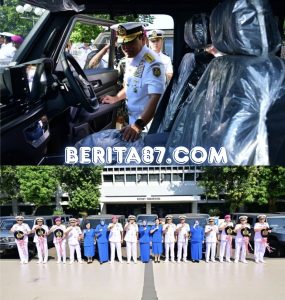 Dispen Kormar TNI Angkatan Laut (Jakarta). Panglima Korps Marinir (Pangkormar) Letnan Jenderal TNI (Mar) Dr. Endi Supardi, S.E., M.M., M.Tr.Opsla., CHRMP., CRMP., diwakili Kepala Staf Korps Marinir (Kas Kormar) Brigadir Jenderal TNI (Mar) Muhammad Nadir, M.Tr.Opsla., secara simbolis terima kunci Kendaraan Taktis (Rantis) mobil Maung dari Kepala Staf Angkatan Laut (Kasal) Laksamana TNI Dr. Muhammad Ali, S.E., M.M., M.Tr. Opsla., di depan Gedung Denma Mabesal, Cilangkap, Jakarta Timur, Selasa (26/08/2025).