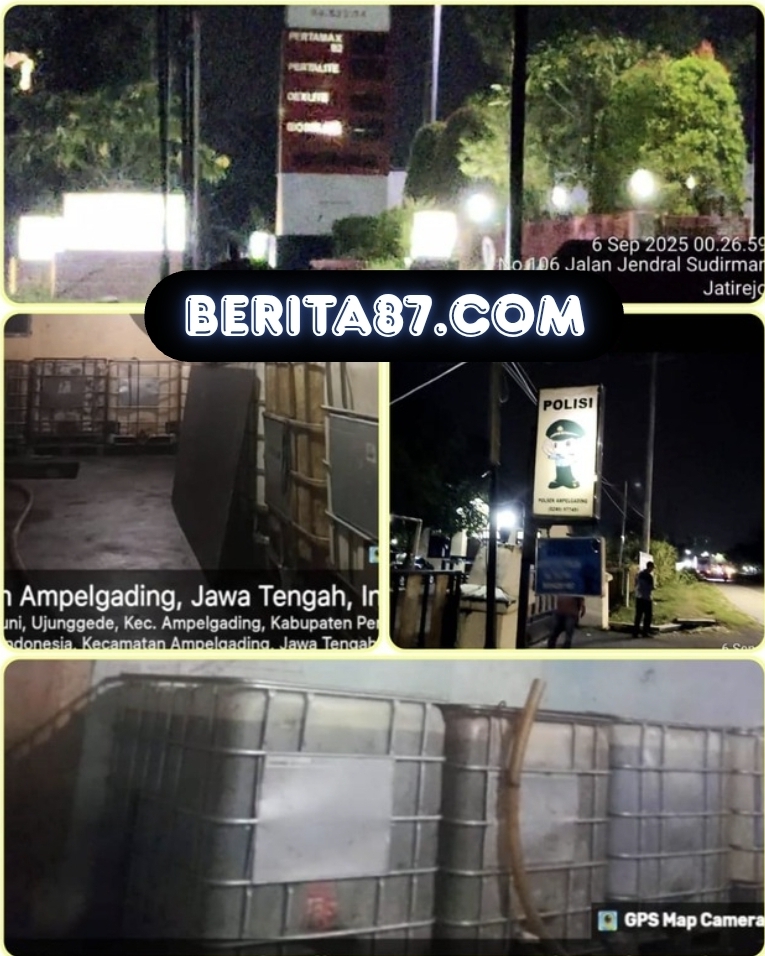 Pemalang , Berita87.com || Ditemukan Gudang penimbunan BBM solar subsidi di Sewuni Desa Ujunggede, Kecamatan Ampelgading, Kabupaten Pemalang Jawa Tengah tempatnya tidak jauh dari Polsek Ampelgading, diduga kuat gudang solar ilegal hasil ngangsu dari SPBU 44.523.04 Comal Baru.