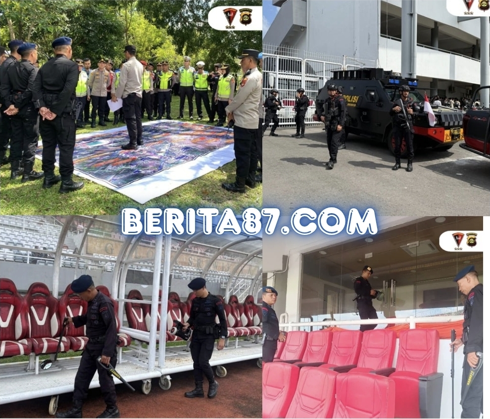 Palembang – Detasemen Gegana Satbrimob Polda Sumsel bersama Batalyon C Pelopor Satbrimob Polda Sumsel melaksanakan sterilisasi dan pengamanan dalam rangka pertandingan sepak bola Kompetisi Liga 2 Indonesia Tahun 2025 yang mempertemukan Sriwijaya FC melawan Garudayaksa FC. Pertandingan berlangsung di Stadion Gelora Sriwijaya Jakabaring, Palembang, dengan pengamanan ketat untuk memastikan situasi tetap aman dan kondusif, minggu 14/9/2025.