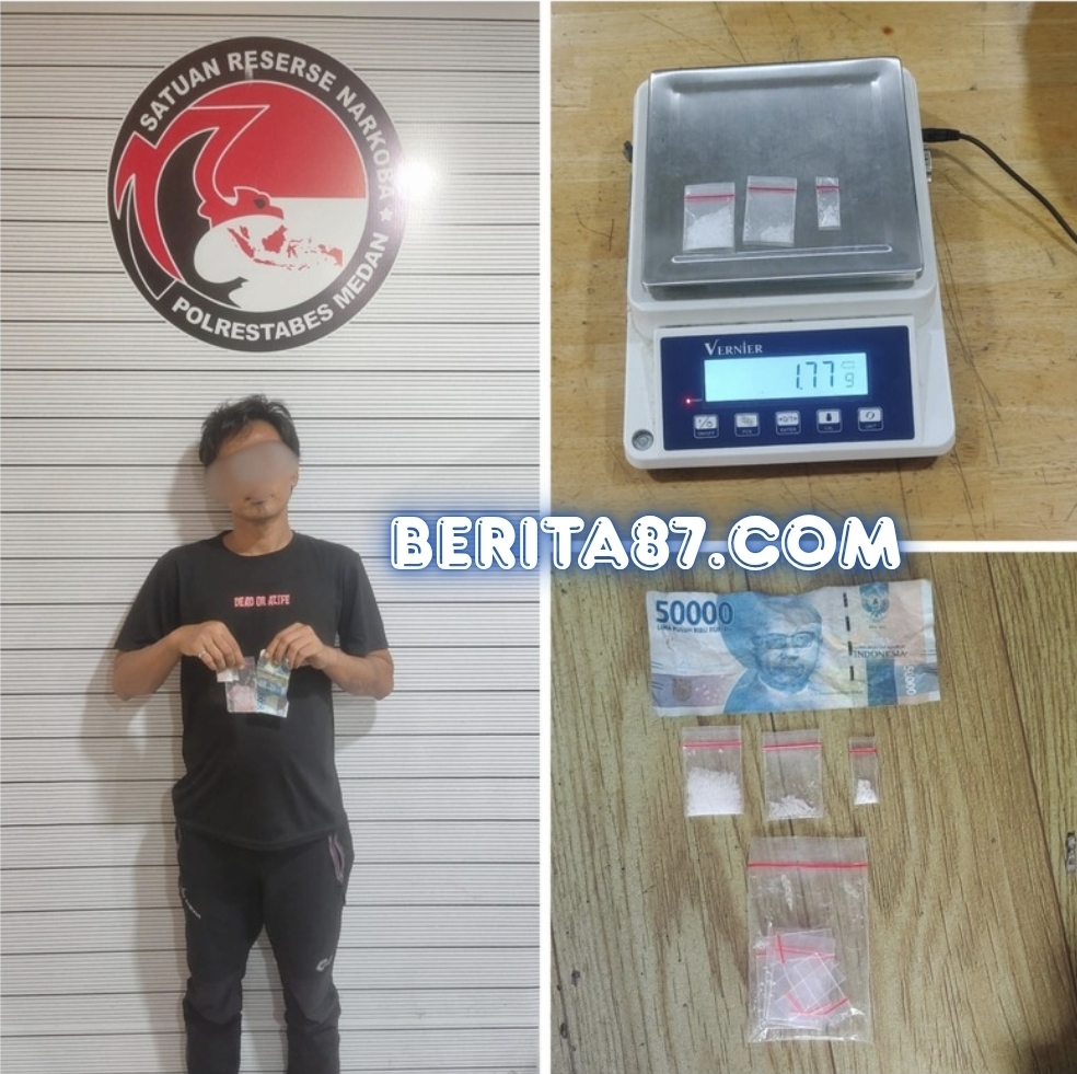 Medan – Satuan Reserse Narkoba (Satresnarkoba) Polrestabes Medan menangkap pengedar narkotika jenis sabu di kawasan Jalan Denai, Gang Sehat, Kelurahan Tegal Sari, Kecamatan Medan Area.