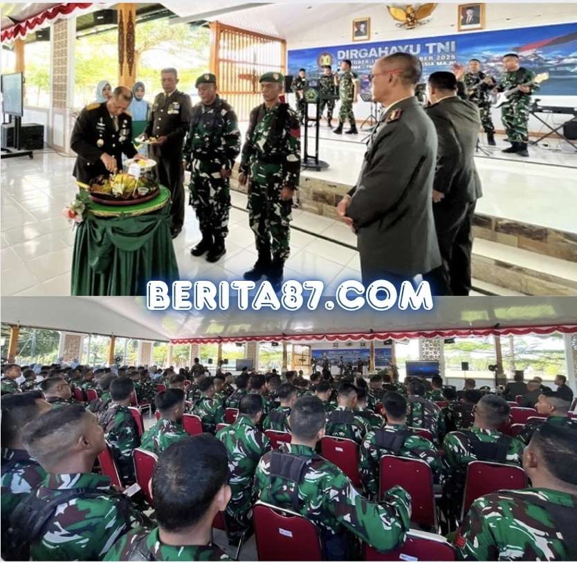 Minggu, 5/10/2025_Prajurit Lanudad Gatot Soebroto Puspenerbad Melaksanakan upacara Hari Ulang Tahun Ke-80 Tentara Nasional Indonesia di Kodim 0427/Way Kanan dan Puslatpur Kodiklatad Martapura