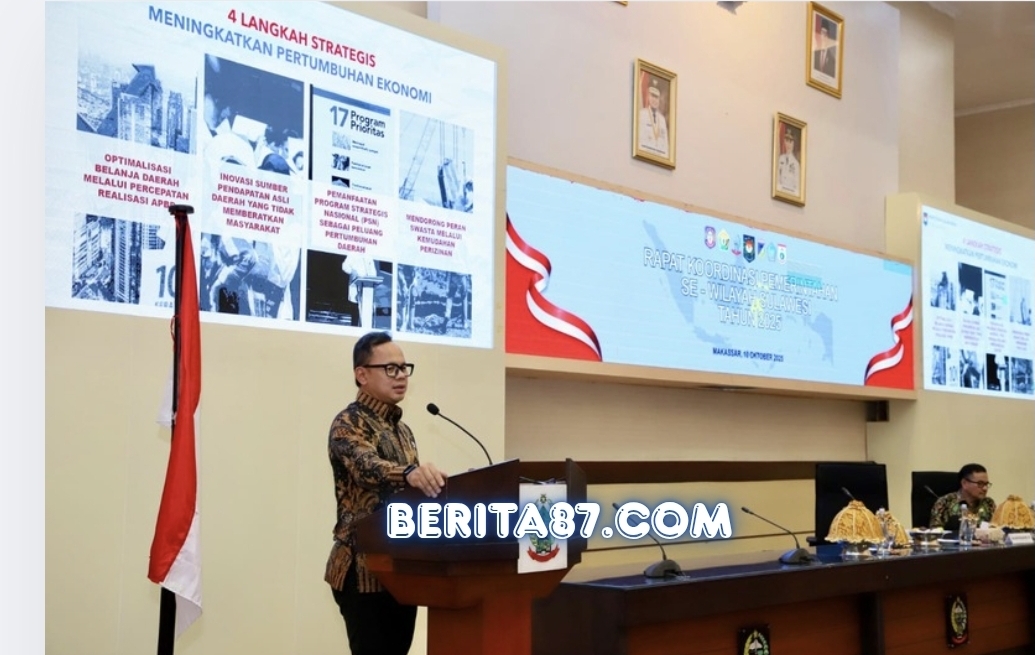 Makassar, Sulawesi Selatan – Wakil Menteri Dalam Negeri (Wamendagri) Bima Arya Sugiarto mendorong pemerintah daerah (Pemda) untuk meningkatkan Pendapatan Asli Daerah (PAD) secara kreatif tanpa memberatkan masyarakat. Hal ini disampaikan Bima saat memberikan pengarahan dalam Rapat Koordinasi Pemerintahan dan Dialog Kebangsaan di Kantor Gubernur Sulawesi Selatan, Kota Makassar, Jumat (10/10/2025).