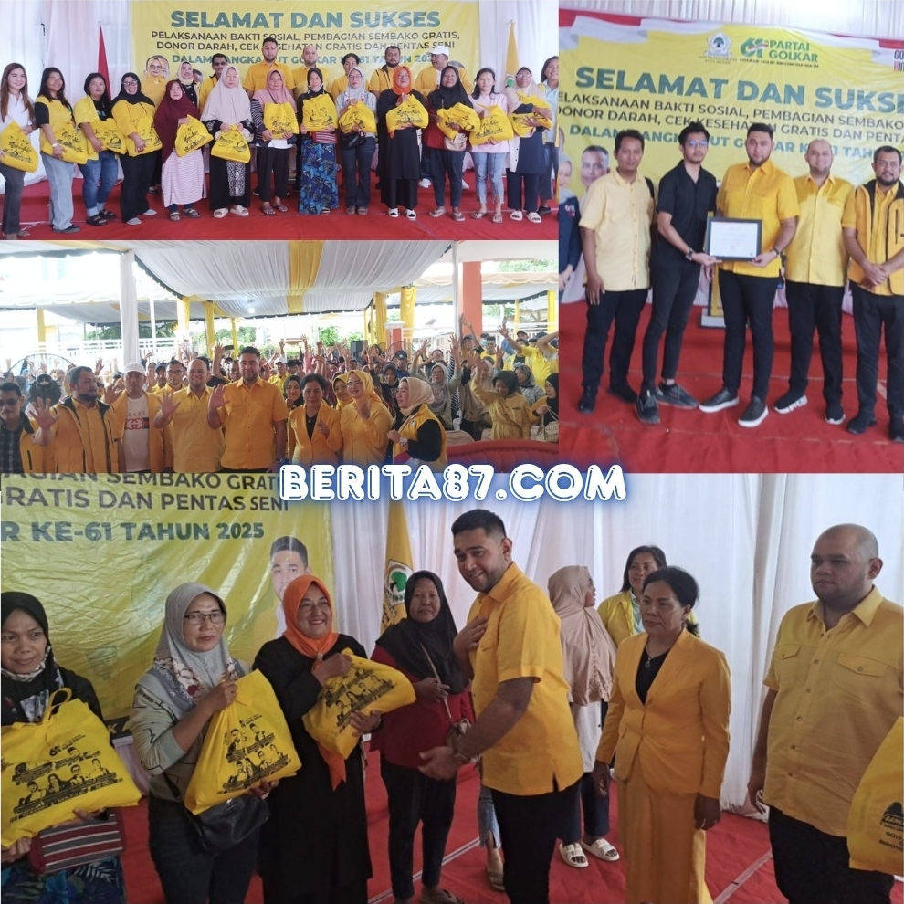 Medan – Dalam rangka memperingati Hari Ulang Tahun (HUT) ke-61 Partai Golkar, Dewan Pimpinan Daerah (DPD) Partai Golkar Kota Medan menggelar serangkaian kegiatan sosial yang dipusatkan di Jalan Jermal XII Ujung, Kecamatan Medan Denai, Sabtu (18/10/2025).