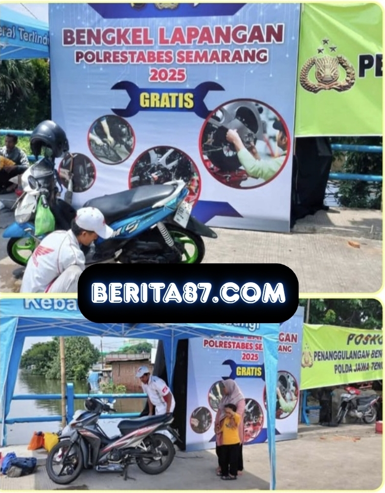 Semarang , Berita 87.com || – Sebagai bentuk kepedulian terhadap masyarakat terdampak banjir, Polrestabes Semarang mendirikan bengkel lapangan di kawasan Jalan Raya Kaligawe, Kecamatan Genuk, Jumat (31/10/2025).