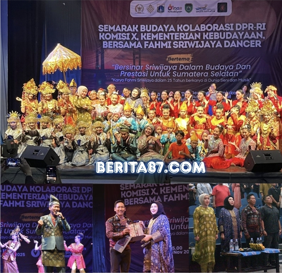 Bersinar sriwijaya dalam budaya dan prestasi untuk Sumatera Selatan, yang merupakan Karya fahmi Sriwijaya dalam kurun waktu 25 tahun berkarya di dunia seni tari dan musik, bertempa di Gedung Pertunjukan Bulungan Jaksel, Sabtu (1/11/2025)