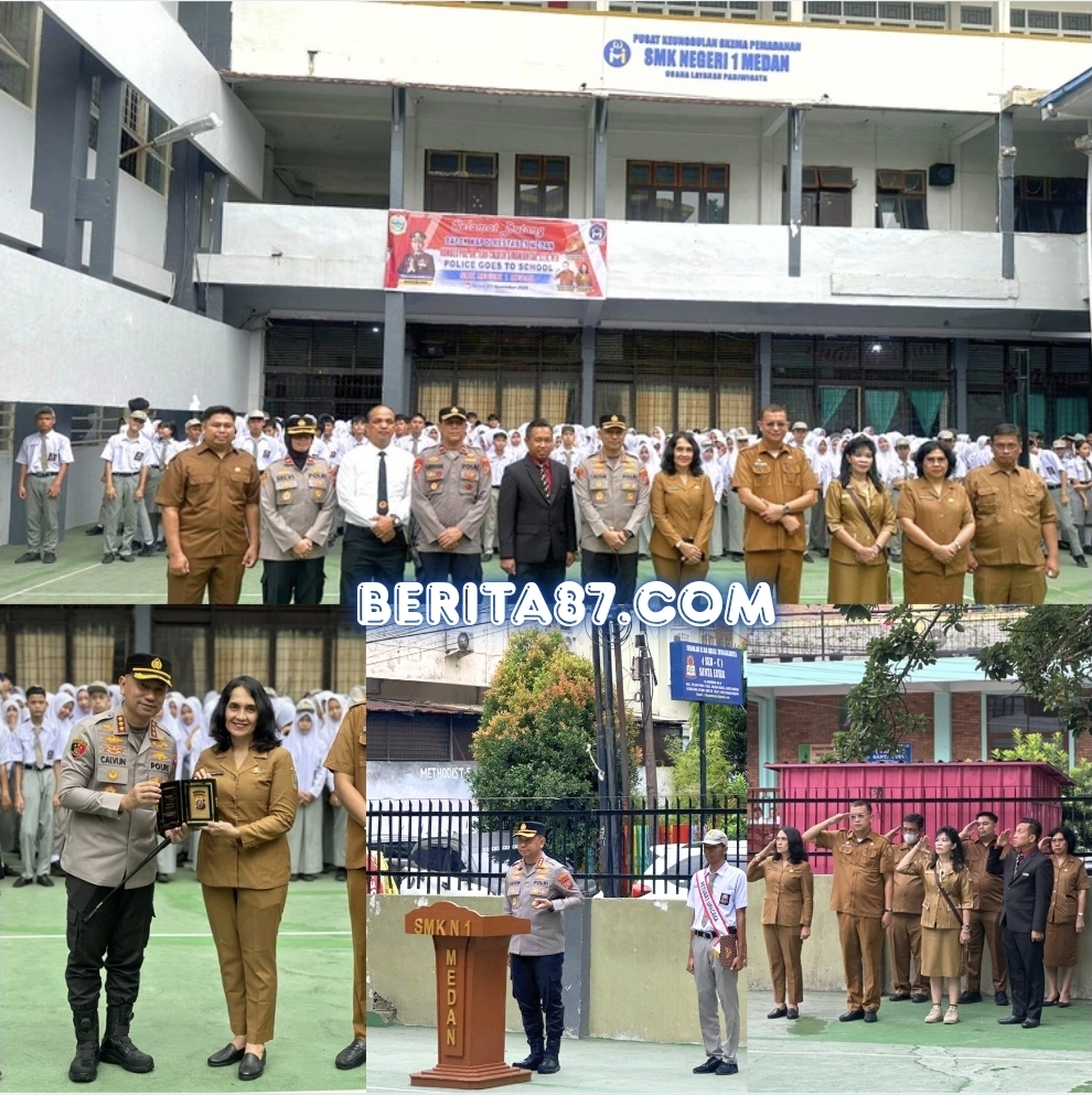 Medan – Kapolrestabes Medan, Kombes Pol Dr. Jean Calvijn Simanjuntak, S.I.K., M.H., memimpin langsung upacara bendera di SMK Negeri 1 Medan, Jalan Sindoro, Kecamatan Medan Kota, Senin (3/11/2025) pagi.