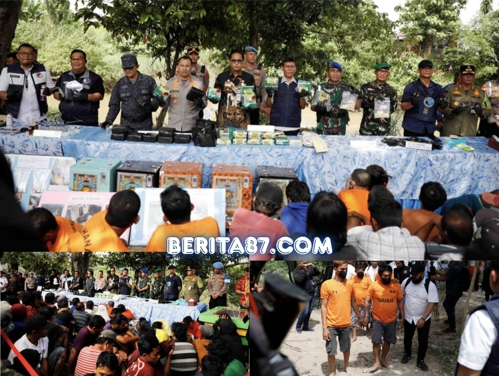 Medan – Kapolrestabes Medan Kombes Pol Dr Jean Calvijn Simanjuntak memimpin konferensi pers pengungkapan besar kasus narkoba di kawasan pinggiran Sungai Lingkungan Pria Laut III, Jalan Balai Desa, Kelurahan Lalang, Kecamatan Medan Sunggal, Jumat (7/11/2025).