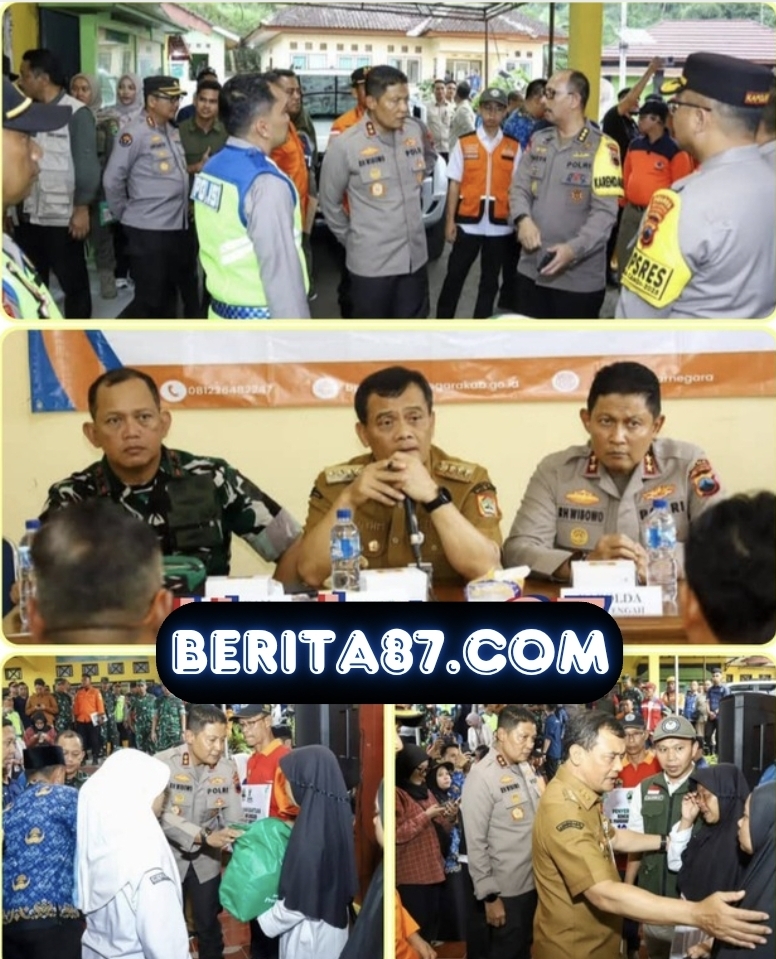 Kota Semarang, Berita 87.com || Polda Jateng – Upaya penanganan bencana tanah longsor di Dusun Situkung, Kecamatan Pandanarum, terus dikebut. Pada Senin (17/11/2025) sore, Kapolda Jawa Tengah Irjen Pol Ribut Hari Wibowo bersama Gubernur Jawa Tengah Ahmad Luthfi serta jajaran Forkopimda Provinsi Jawa Tengah meninjau langsung posko pengungsian warga di Kantor Kecamatan Pandanarum.