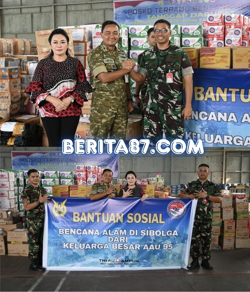 Sebagai wujud kepedulian, AAU ’95 menyalurkan bantuan logistik berupa bahan makanan dan air mineral bagi para korban bencana. Bantuan tersebut diserahkan langsung oleh Panglima Kosek I, Marsma TNI Imam Subekti, S.T., M.IR., kepada Kadisops Lanud Soewondo, Kolonel Pnb Firmandes Pasaribu, S.T., M. Han., di Hanggar Lanud Soewondo yang saat ini difungsikan sebagai Posko Terpadu Penanggulangan Bencana Sumatera, pada Senin (1/12/2025).