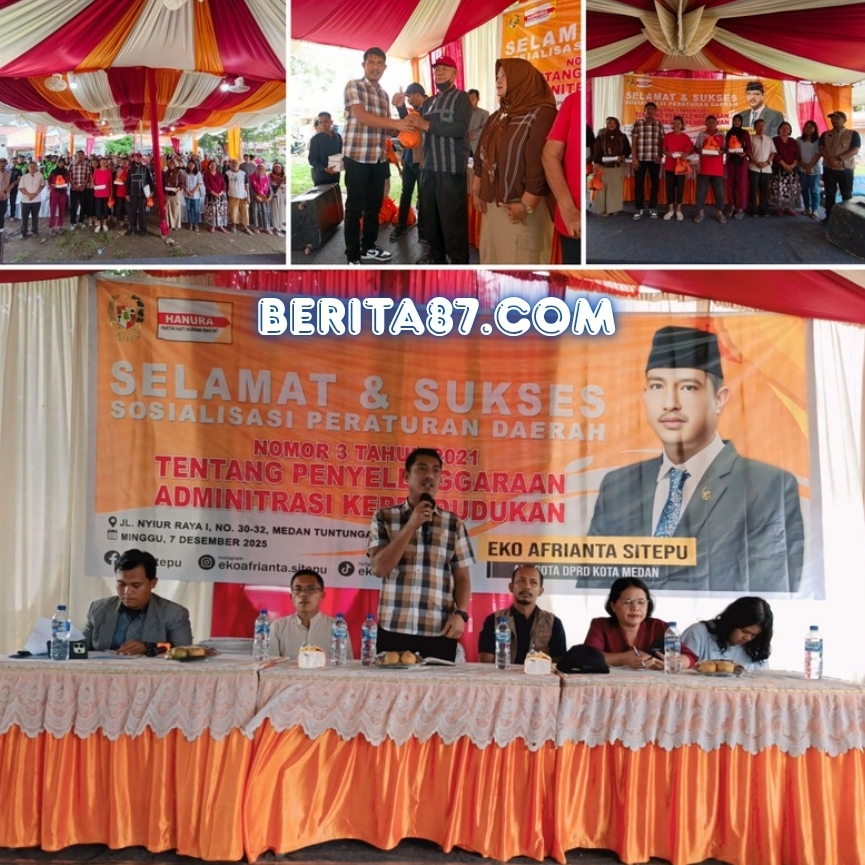 Anggota DPRD Kota Medan, Eko Afrianta Sitepu, melaksanakan kegiatan Sosialisasi Peraturan Daerah (Perda) Kota Medan Nomor 3 Tahun 2021 tentang Penyelenggaraan Administrasi Kependudukan di Jalan Nyiur 1, Kelurahan Mangga, Kecamatan Medan Tuntungan, Minggu (7/12/2025).