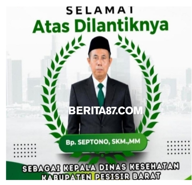 Berita87.com – “Selamat & sukses atas di lantiknya Bapak SEPTONO.SKM.MM,sebagai kadis kesehatan kabupaten pesisir Barat,semoga amanah dalam menjalankan tugas,membawa inovasi,serta meningkatkan kualitas bidang pelayanan kesehatan bagi masyarakat di Kabupaten Pesisir Barat menjadi lebih maju,berkualitas,dan integritas”.
